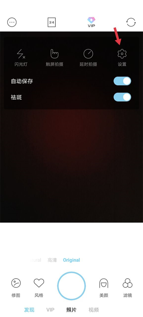 用户点击左上角三个点图标,再点击设置按钮可以进入设置界面,可以调节去soda水印等功能。
