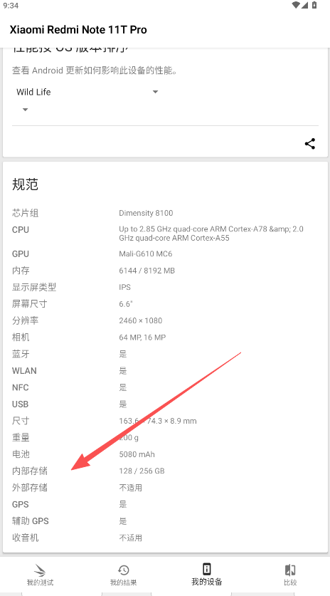 2、点击“我的设置”查看3DMark通过率的主要组成部分:性能快照、性能范围、性能OS排行榜以及规范等具体配置详细明细。
