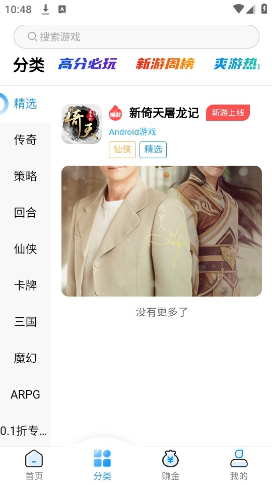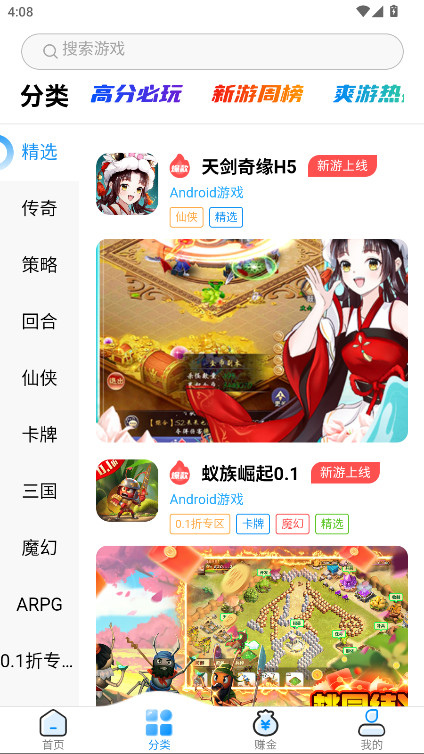 2、来到首页和“分类”板块,为玩家提供了超级多的游戏资源,涵盖回合、三国以及传奇。