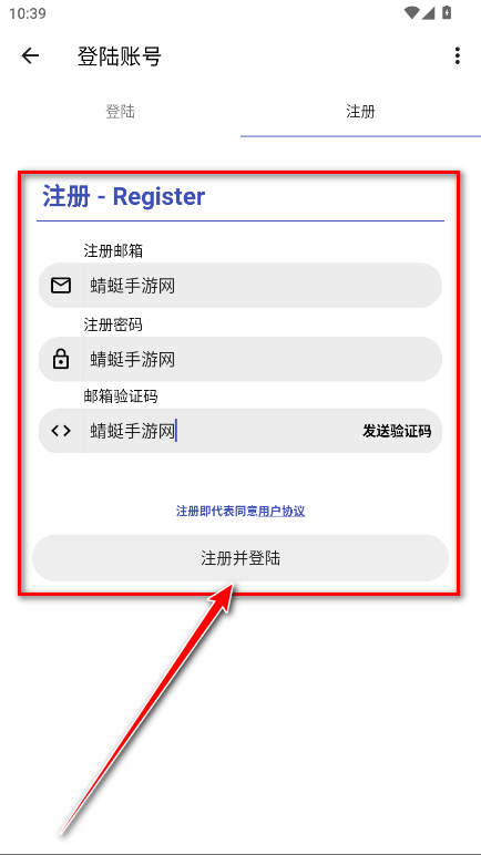 4.请按照要求输入注册邮箱、注册密码、邮箱验证码,然后点击注册并登陆即可。