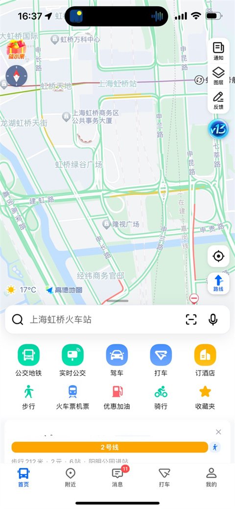 1、下载进入到高德地图主界面,点击底部的搜索栏并搜索地点