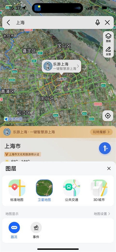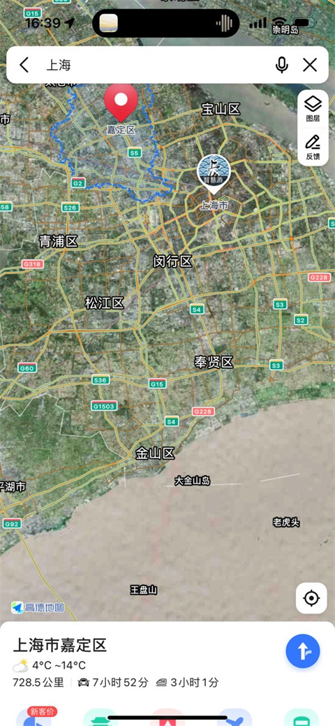 2、搜索到地点后,点击右上角的【图层】切换选项,如图所示