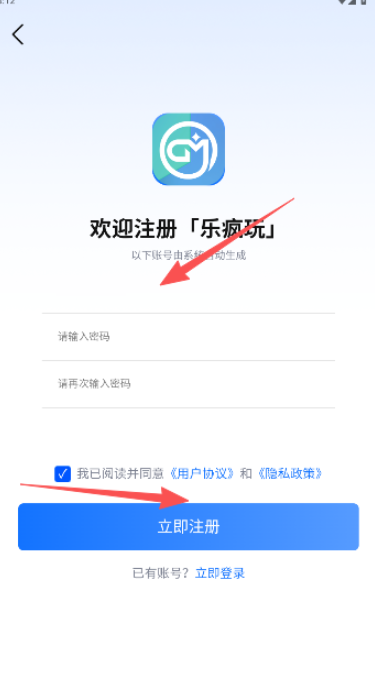 2、输入英文字母开头账号,设置登录密码,勾选下方用户协议和服务政策注意事项,点击注册。