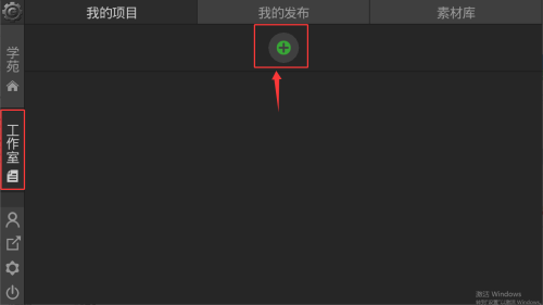 1、进入工作室页面,点击我的发布旁的加号开始创作。