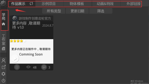 2、选择学苑栏目,可浏览作品展示中的各类示例内容。