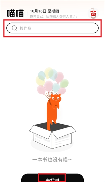 1、打开喵小乐app,进入后点击搜索框或者去找书