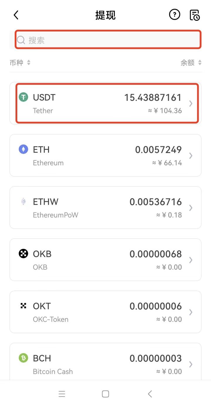 打开O易交易所App,点击【资产】—【提币】,会显示您目前可提币的币种,直接选择或者搜索USDT,点击【链上提币】。