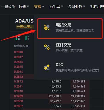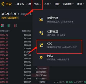 3、点击下方交易功能键,在上方选择c2c交易区。