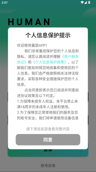 1.在使用APP之前,你需要先同意相关的用户服务协议和个人信息保护政策。