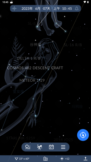 Sky Tonight 是一款功能强大的天文探索应用,能够帮助用户轻松搜寻和识别天空中的各类天体,包括星星、星座、行星、卫星(如国际空间站)、小行星、彗星等。通过实时天文数据和精确的定位技术,Sky Tonight 提供了一个个人化的夜空指南,让你在任何地点、任何时间都能清晰地看到天空中的各类天体。无论是天文爱好者还是初学者,都能通过这款应用享受天文观测的乐趣,了解宇宙的奥秘。