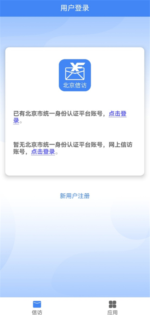 1、打开北京信访App,如有北京市统一身份证认证平台账号点击登录入口。