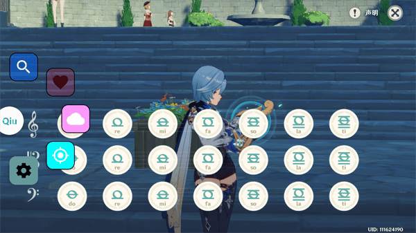 1、下载打开原神自动弹琴QiuMusicPro,进入主页,点击正下方的播放按键;