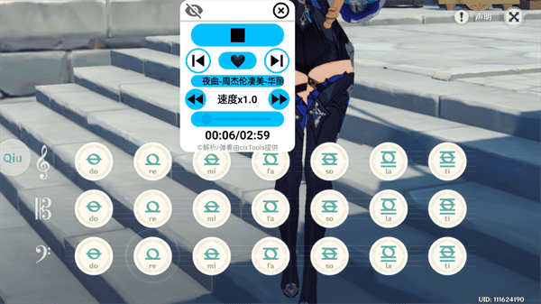 7、出现此页面之后点击播放即可开始弹奏,还能点击小眼睛可以隐藏浮窗哦!