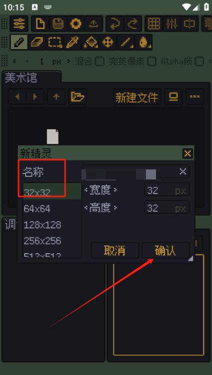 3、再对文件进行命名、调整大小并点击确认即可新建图层