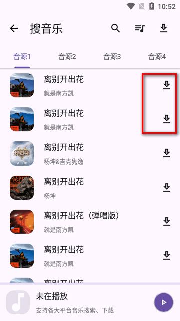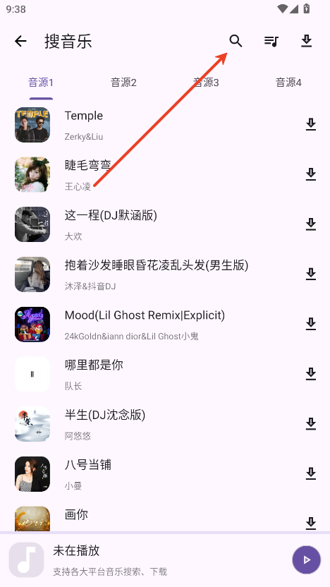 3、进入搜音乐界面,可选择音源后点搜索按钮。
