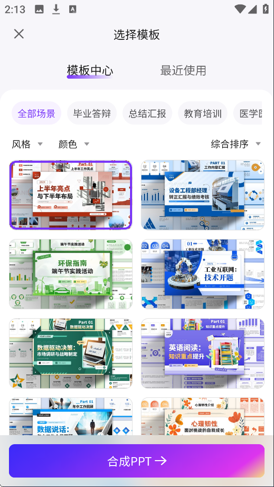 3、生成大纲后,用户可以选择下载大纲,也可以继续挑选PPT模版进行排版美化