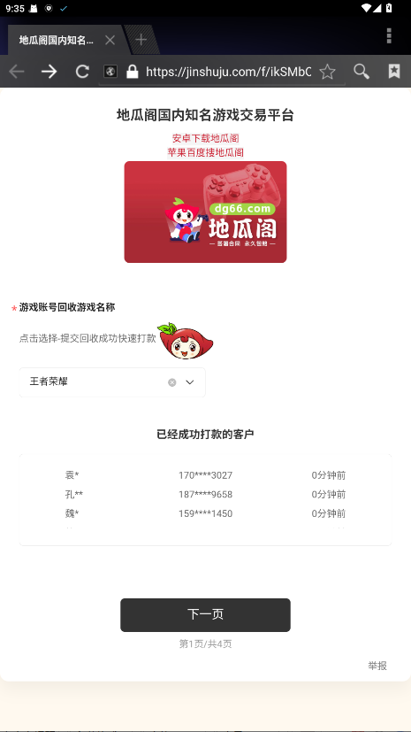 鲁ICP备2023009104号-2A地瓜阁App是一款专注于游戏物品和账号交易的平台,提供安全、便捷的交易服务。用户可以在平台上买卖各种热门游戏的虚拟物品、金币和账号。平台支持多种支付方式,并通过严格的审核机制确保交易的安全性。无论是新手玩家还是资深玩家,都能在这里轻松找到自己需要的游戏资源,提升游戏体验。