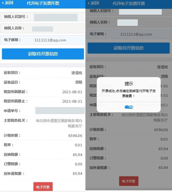 确认信息,包括发票号码和代码,如下图: