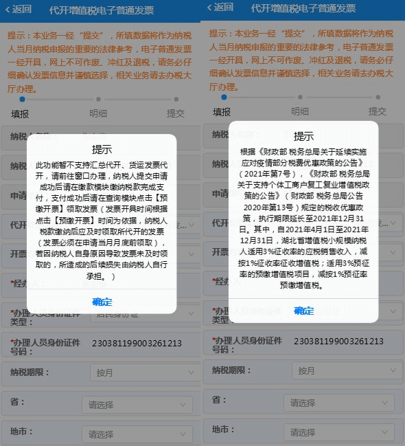 进入【代开增值税电子普通发票申请】功能后,请注意查看提示信息。