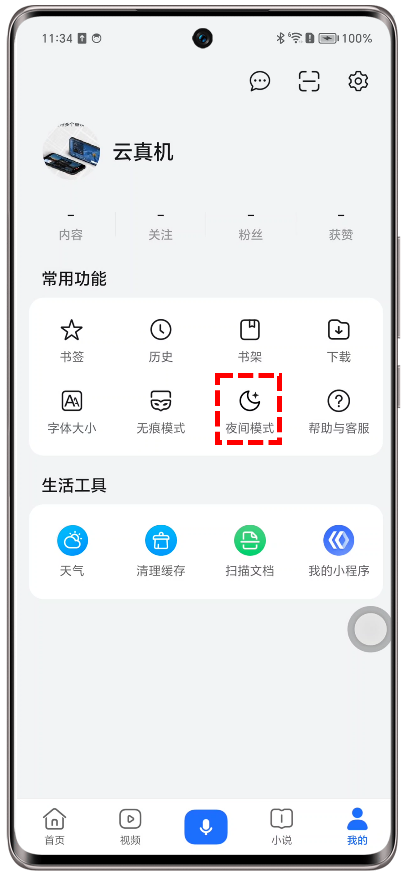 1、用户可以在荣耀浏览器app中点击底部右下角的小人图标