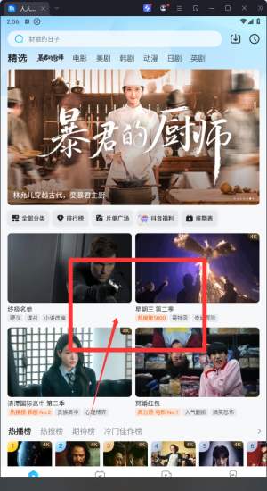 1、首先打开下载好的软件,进入软件后点击界面上方的搜索框搜索想要下载的影视;