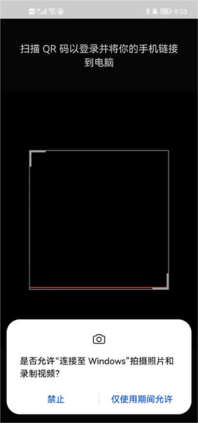 3、这个时候可以打开手机上的连接至Windows app,选择通过二维码进行匹配;