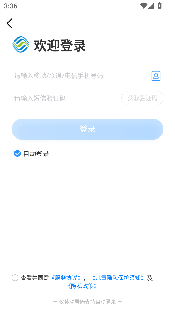 2.输入你想登录的中国移动的手机号,并且输入短信验证码。