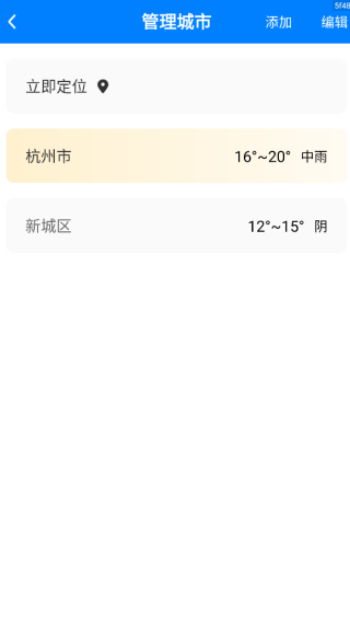 4.选好之后返回首页,就能看到选择的城市天气,操作简单方便。