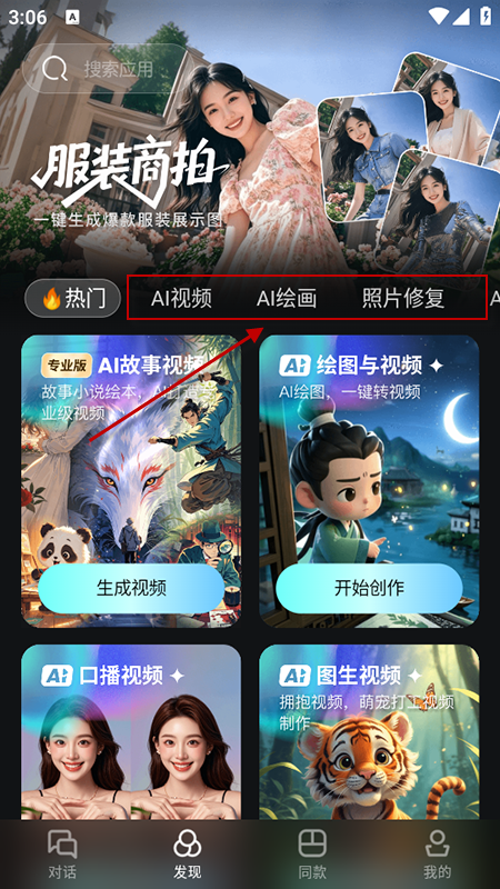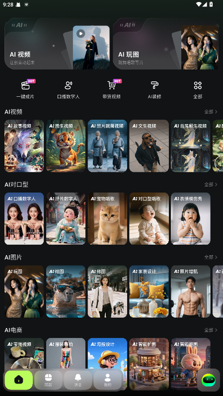 1、在本站下载安装并打开软件之后,在首页可看到各类功能选项,如AI绘画、AI视频、AI音乐、照片修复等,根据需求选择相应功能。