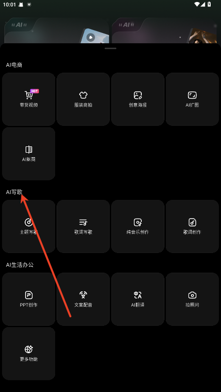 3、对于AI写歌、文案创作等功能,同样是进入相应板块,按照提示输入必要的信息或需求,然后等待AI完成相应操作。