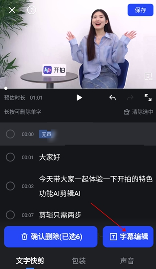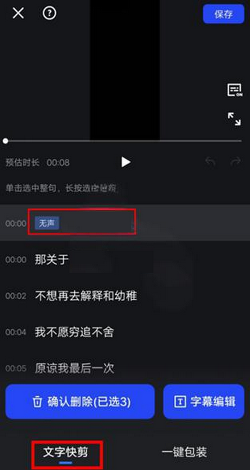 3.可智能别视频:语气词,无声片段,重复片段,选中即可一键删除,快速提高剪辑效率。