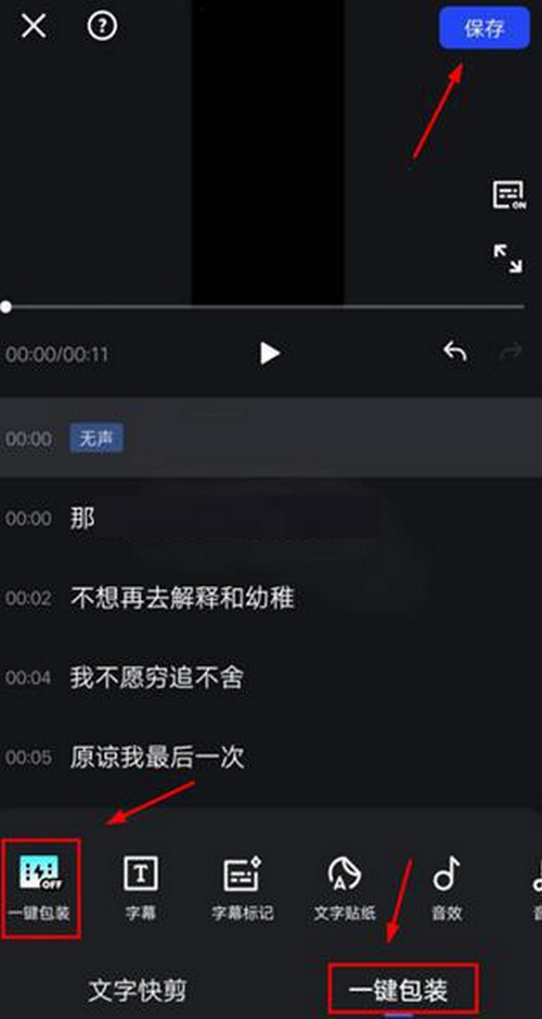 5.剪辑完成后,点击一键包装即可为你自动生成剪辑好的视频,视频生成后,你可在页面内预览视频剪辑效果,对视频剪辑效果满意就可点击保存,将剪辑好的视频保存在手机内。