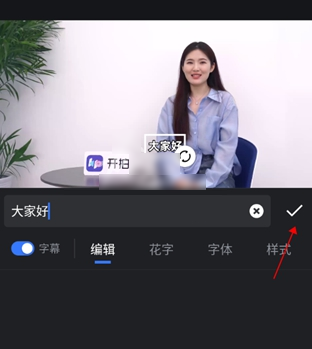 2.将字幕移动到合适的位置,然后点击勾即可完成字幕添加。