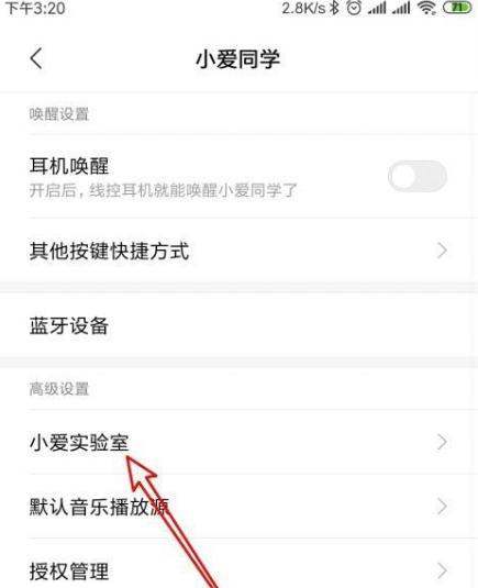 3.进入小爱实验室在小爱同学设置界面中选择小爱实验室,该板块包含语音交互的深度定制功能。