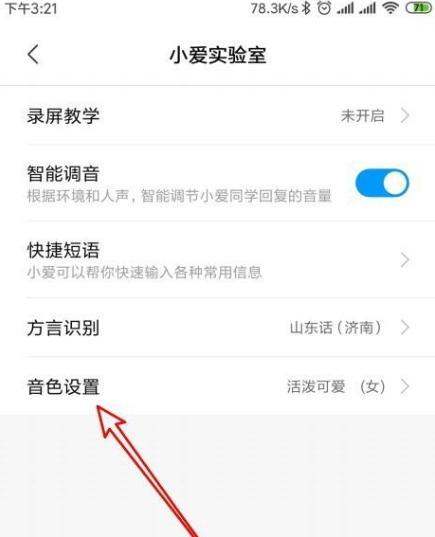 4.打开音色设置菜单在小爱实验室界面中点击音色设置,系统将展示当前可用的语音音色列表。