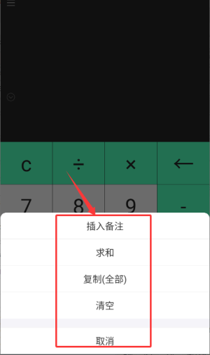 3、在弹出菜单中选择插入备注或求和等功能完成计算操作。