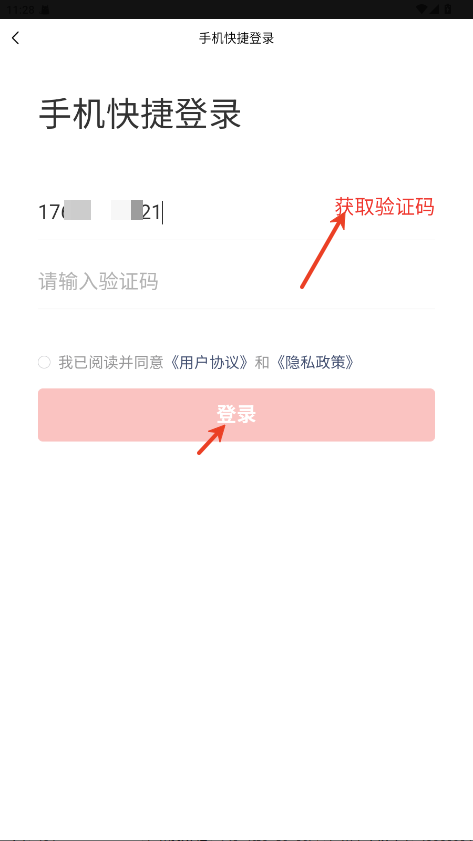 2.输入手机号获取验证码,点击登录即可