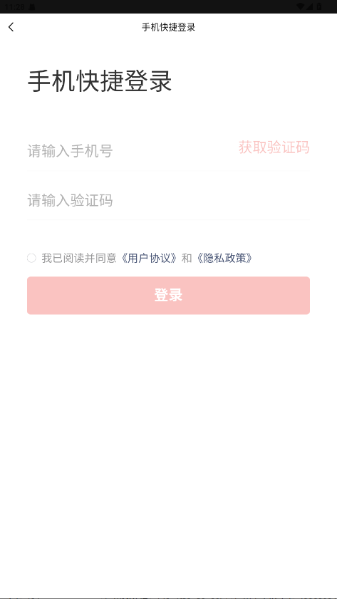 1.进入软件就会弹出手机快捷登录页面