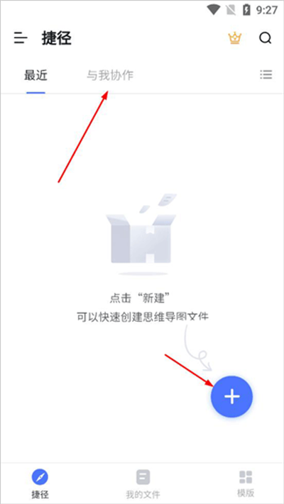 3.捷径页面,显示最近思维导图文件,也可以点击右下角新建文件,可以邀请多人一起创建思维导图。