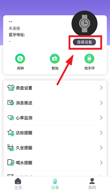 1.下载安装并打开xrunning手表app,进入后点击设备
