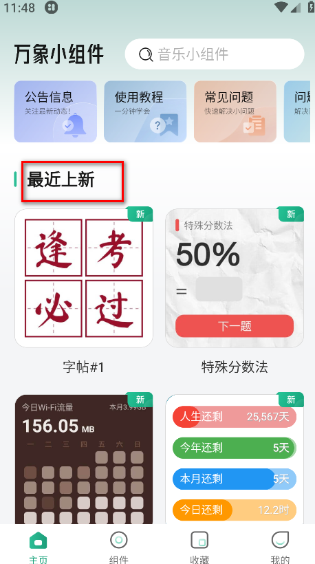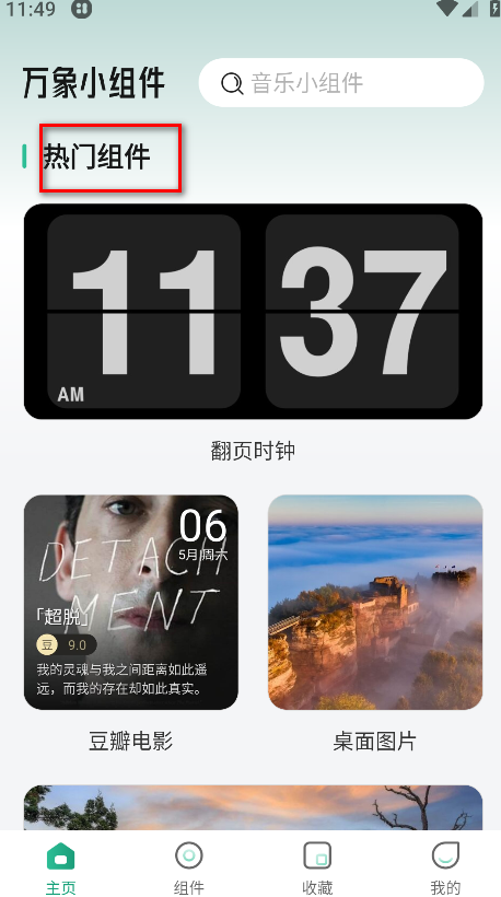 1、打开软件,在主页会有很多的小组件;