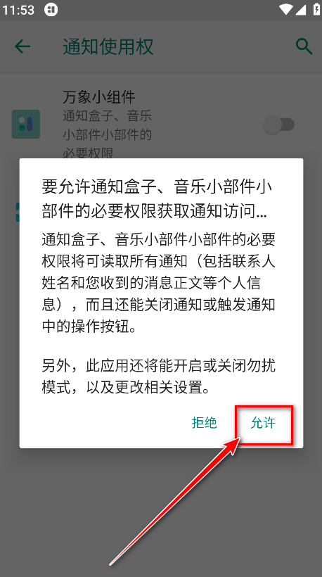 8.点击允许即可,同理其他的小组件也是一样的搜索和设置哈。