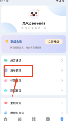 1.在我的页面,点击清单管理。