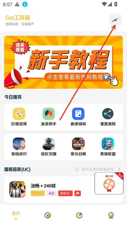 4.选择好需要的功能,点击首页右上角,切换游戏国际服,还是国服
