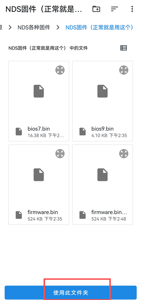 9、找到刚才下载NDS固件的文件夹,点击【使用此文件夹】。