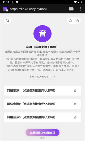 2、进入后可以看到有几个音源链接可以进行复制,选择网络音源1进行复制