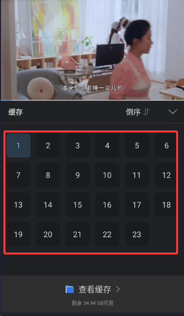 3.点击“下载缓存”,选择你想下载的集数。