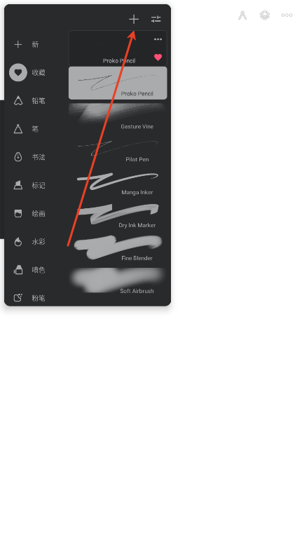 添加笔刷:按图中“+”,→“社区”社区分享或 “+笔刷”自制。