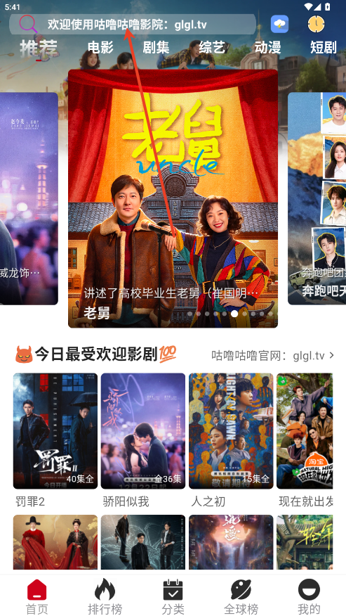 2.在顶部搜索框中输入剧集或电影名称,快速找到你感兴趣的内容。