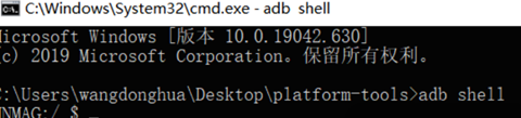 1)在控制台输入‘adb shell’,回车,确保手机与电脑连接成功